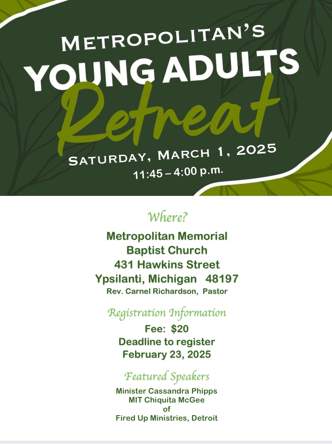 Young Adult Retreat: March 2025